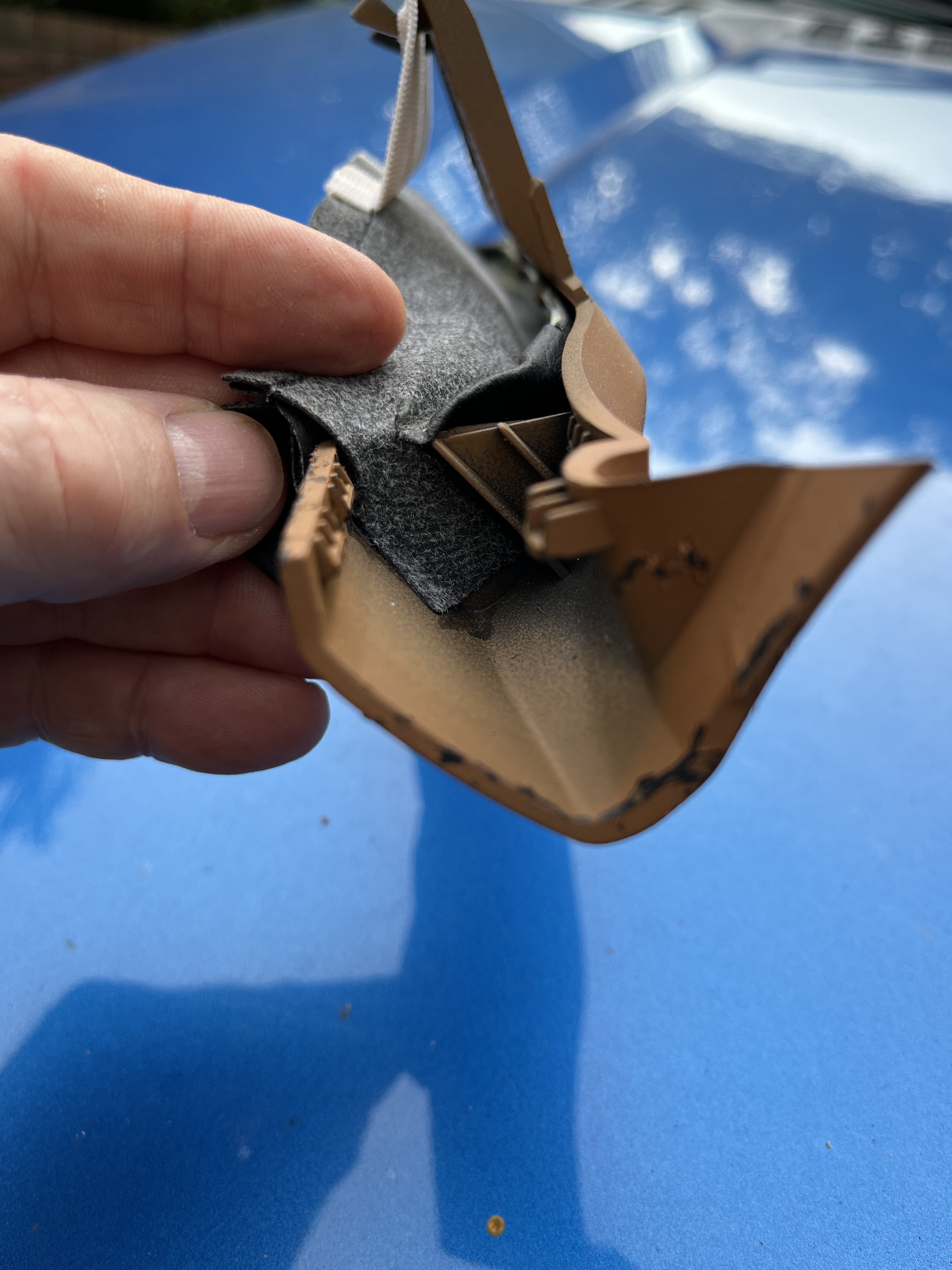 Once you get the trim piece out, the 2 Torx screws are easy and obvious. Then it just becomes a brute force effort to release the two top clips holding in the pod. I really had to tug a lot. It was scary hard but if finally came.