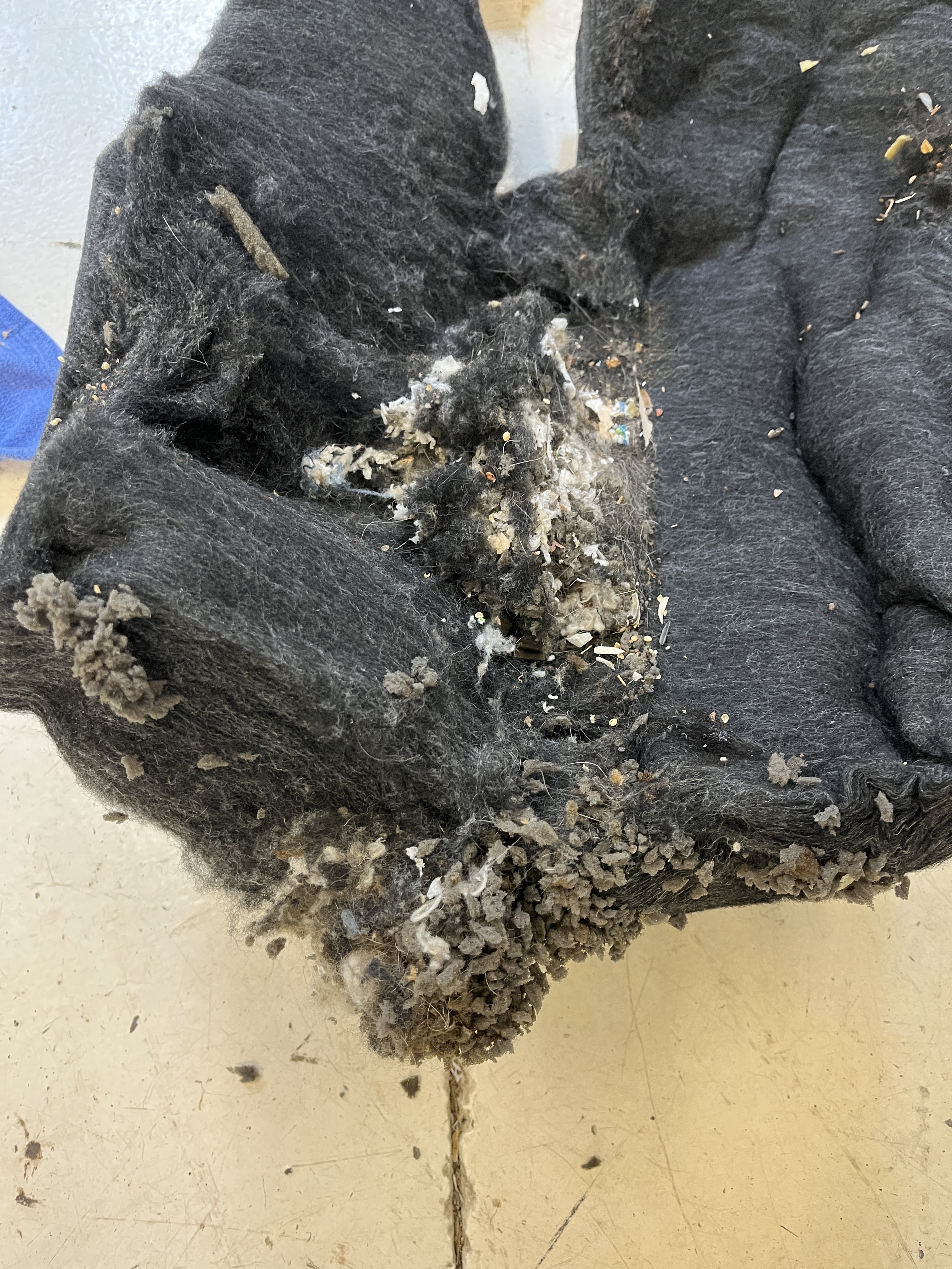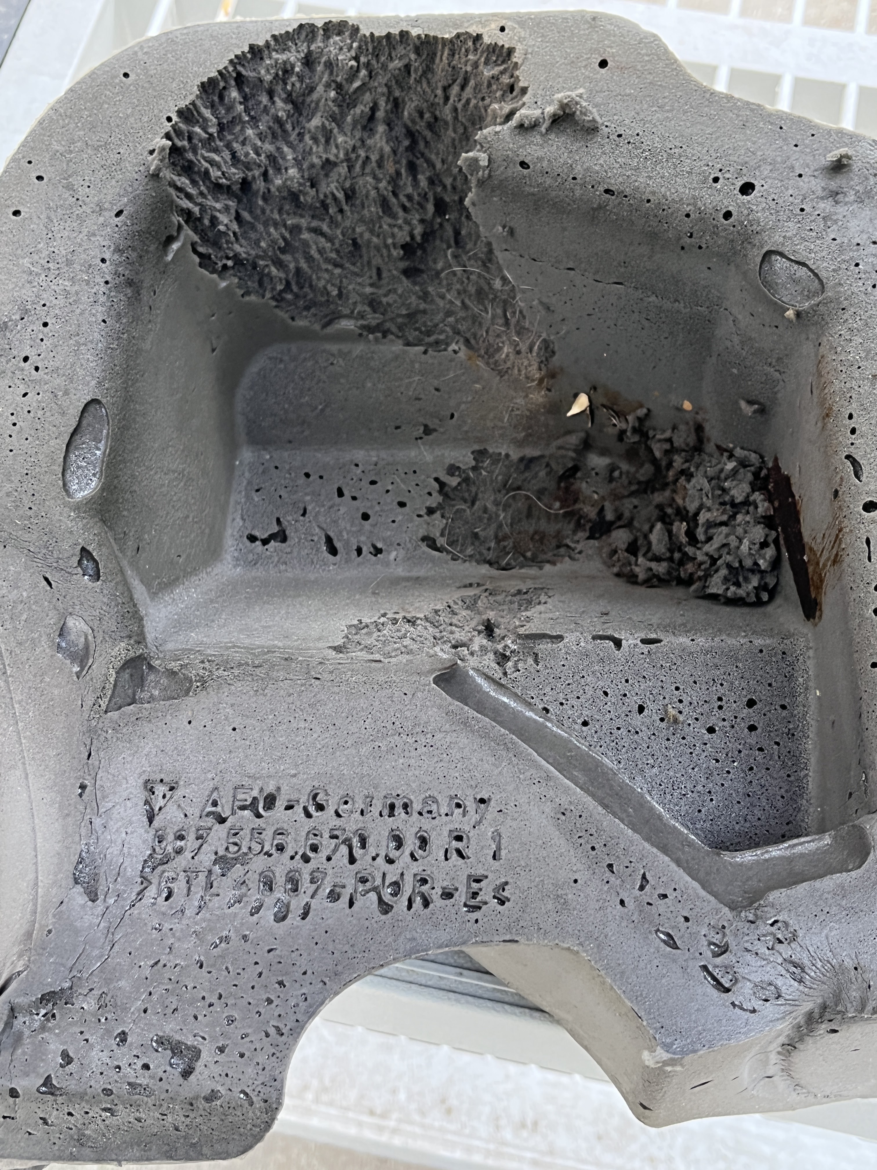 And just to gross you out, the area around and under the above piece is filled with closed cell foam insulation as well as the black fiberglass mat. This is one area where my mice had set up shop. Fortunately these pieces are available from Porsche at a reasonable price and delivery time.