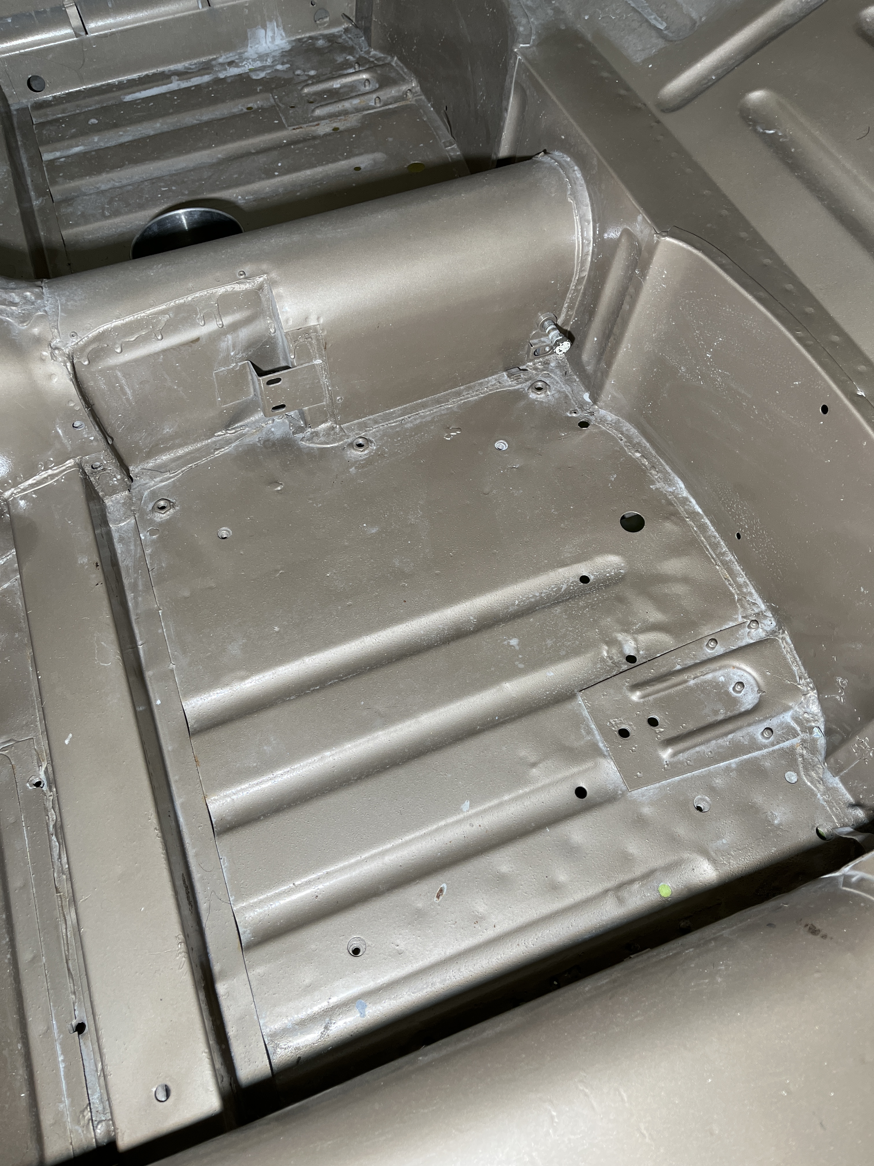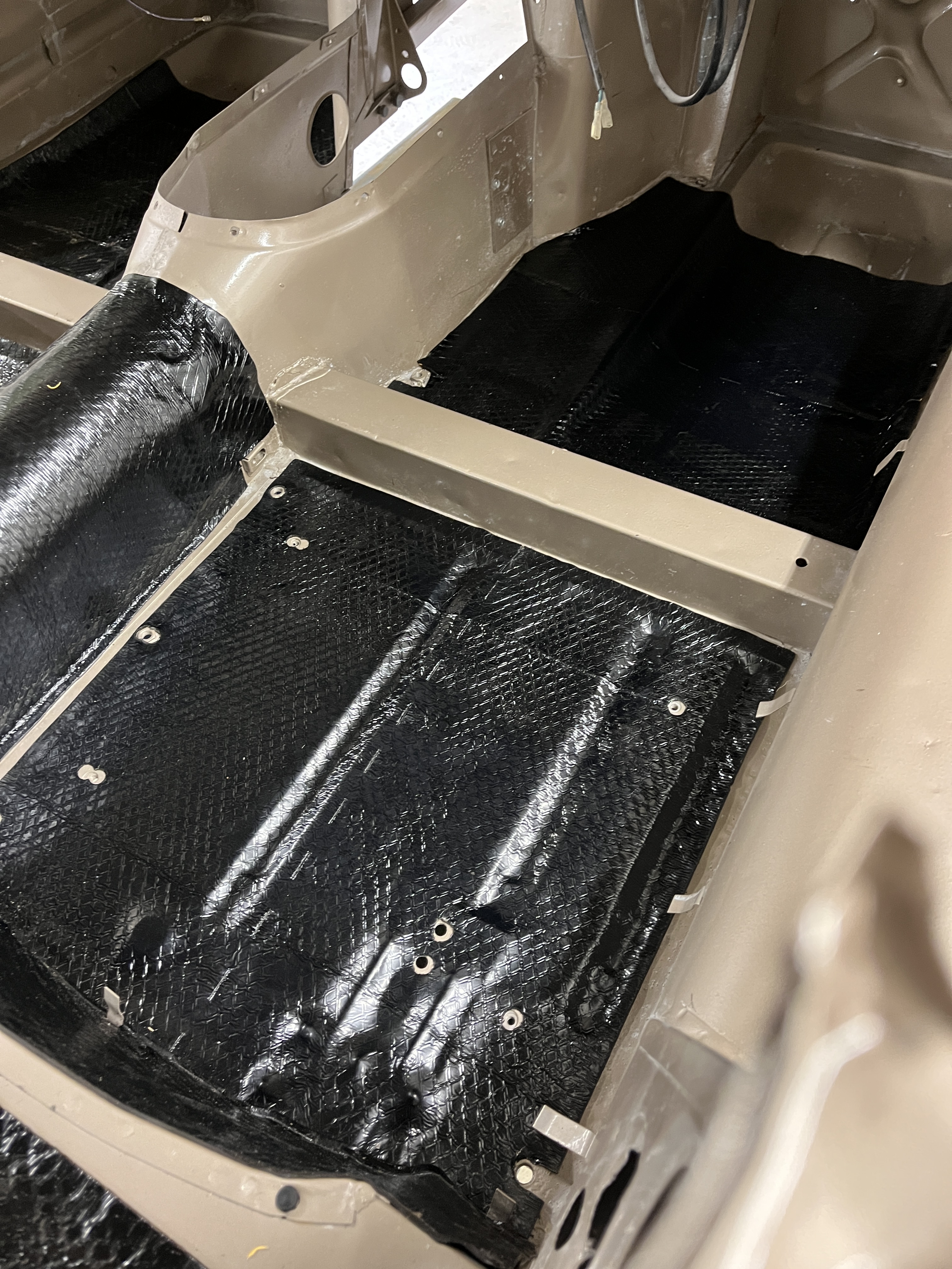 BTW, it appears that the pads from the factory were body color. I would surmize that the pads were added at the factory before paint. Sounds like a recipe for rust to me. My floors were fully painted and then the pads were applied. I thought about painting them but they will rarely be seen and I was worried about paint adhesion to the pads, so I left them black.