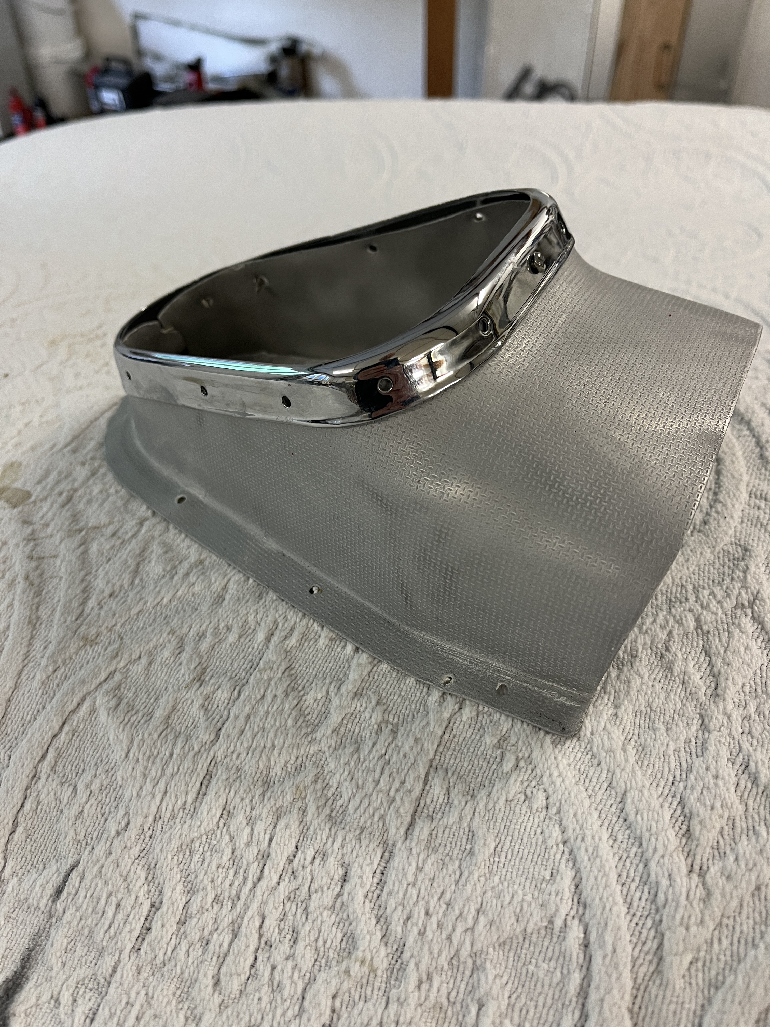 Speaking of the shift lever, the final piece in the puzzle was the dome shaped piece around the shift lever. I had looked previously at what it would take to fabricate a new piece and I was intimidated. It is a complex 3D shape. The one I had was in marginal condition. I was worried that it would look shabby next to all the new pieces. At some point, I found a piece at RW Auto Classics in the Seattle area that looked to be in pretty good shape, so I bought the one they had. I found it had been “bead blasted” which is why it looked so good in the pictures. I set to work cleaning it up with the aluminum wheel cleaner and various sand paper from 600 grit through 3000 grit. I was able to bring its appearance up to be equivalent to my other pieces. That saved me the difficult task of making a new piece.