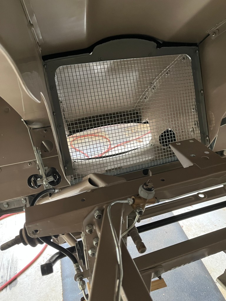 BTW pay close attention to the Judging Guide in this area. Radiator – Black except center section. Radiator stone screen- Cadmium. Stone screen frame- Light grey / slight green tint. I use Dove Grey rattle can enamal. Fan shroud – Silver fiberglass. Radiator braces – Light grey / slight green tint. Header tank and support – Hammertone silver. Bonnet balance links – Cadmium. Balance link springs – Black. You might ask about the Marston radiator tag? According to Haddock/Mueller page 207, “Later 3.8 litre aluminum radiators did not have this tag.” Is my car, built in the 3rd year of 3.8 production, a “later” car? I don’t know. I have left the reproduction tag that CoolCat included with the radiator off for now. I can always add it.