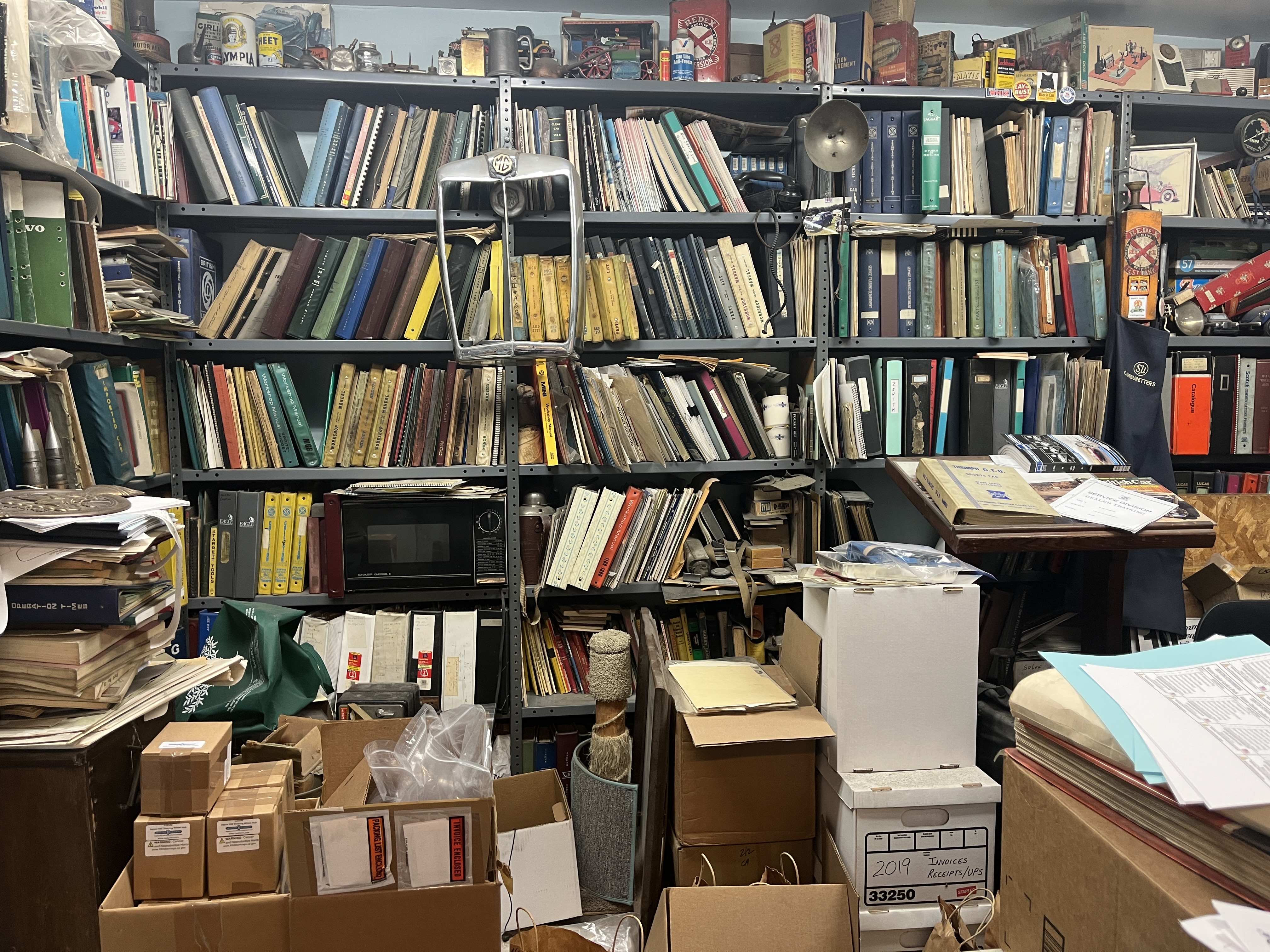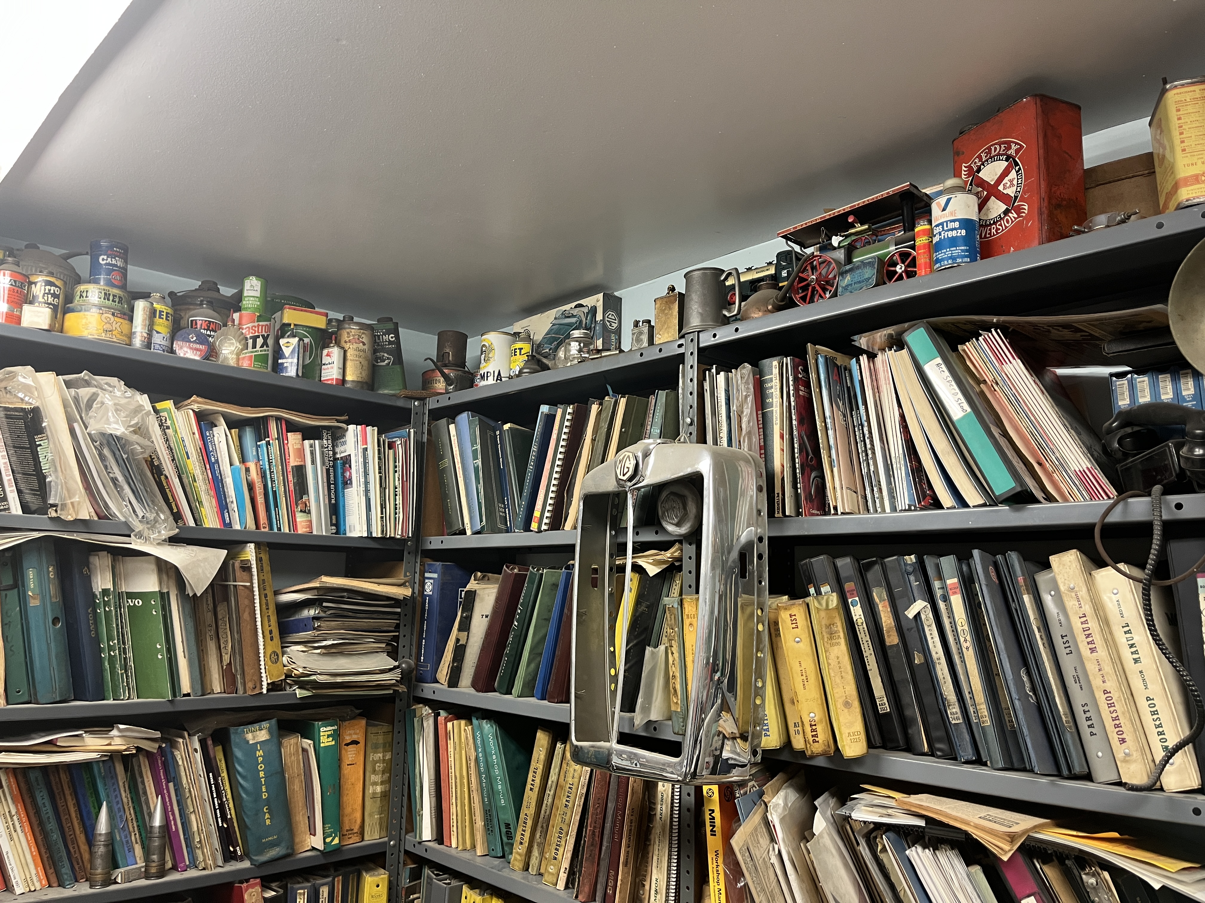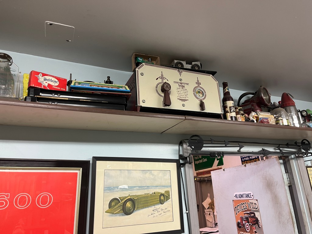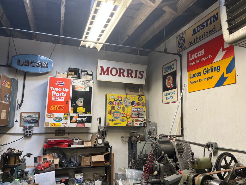 After I asked Joe his association with John Farrell, he said yes, he and John had made many trips to the UK to buy stuff on the cheap and make a living re-selling it in the US. Which gave Joe an opening to show me all the non-carburator stuff he has collected over the years. Wow, his shop is really a small museum posing as an automotive repair business! I cannot begin to describe all the interesting items he had collected so I’ll just throw in some photos to give you an idea. But I could tell that Joe was very proud of all the unique items he had acquired.