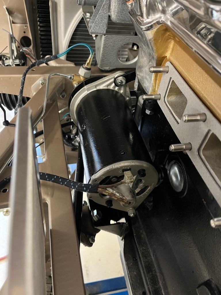 Generator– Yes, this old girl has a generator, not an alternator. Because my goal is to make this car the same as it came from the factory, I ruled out an alternator or even an alternator disguised to look like a generator (these don’t look quite the same and when you get to the voltage regulator things get worse). I found an old school electrical repair shop locally. They tested the generator and pronounced it good. I did my standard detailing job. Black enamel paint on the body. End caps lightly bead blasted to refresh the cast aluminum.
