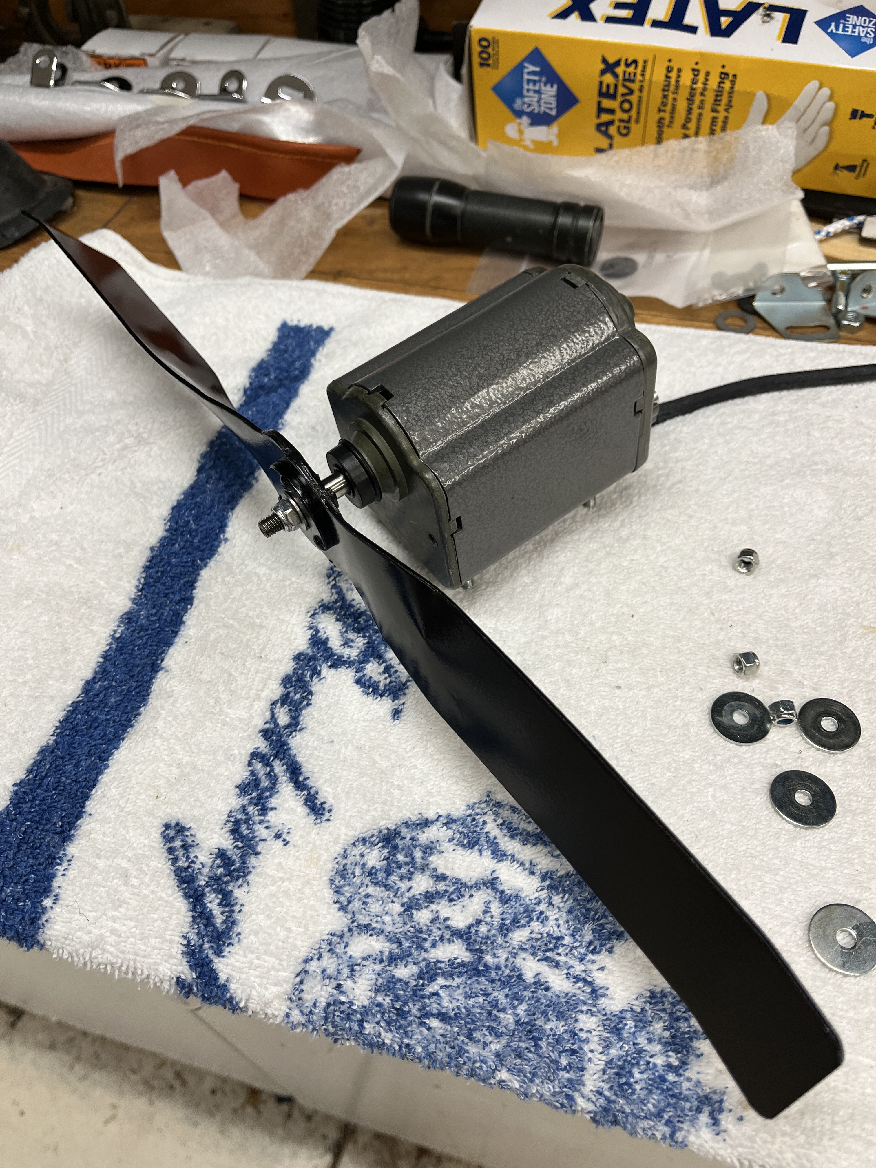 Radiator Cooling Fan – Such a pathetic device! Again, for the sake of orginality, I am going back with the original fan but seriously, what were they thinking? The fan motor that came in my box of parts did not work and all my fettling did not bring it back to life. SNG sells a genuine Lucas replacement, that externally looks identical. I purchased it and painted the fan blade with black enamel. It all mounts on a little pedestal cantilevered off the front of the picture frame.