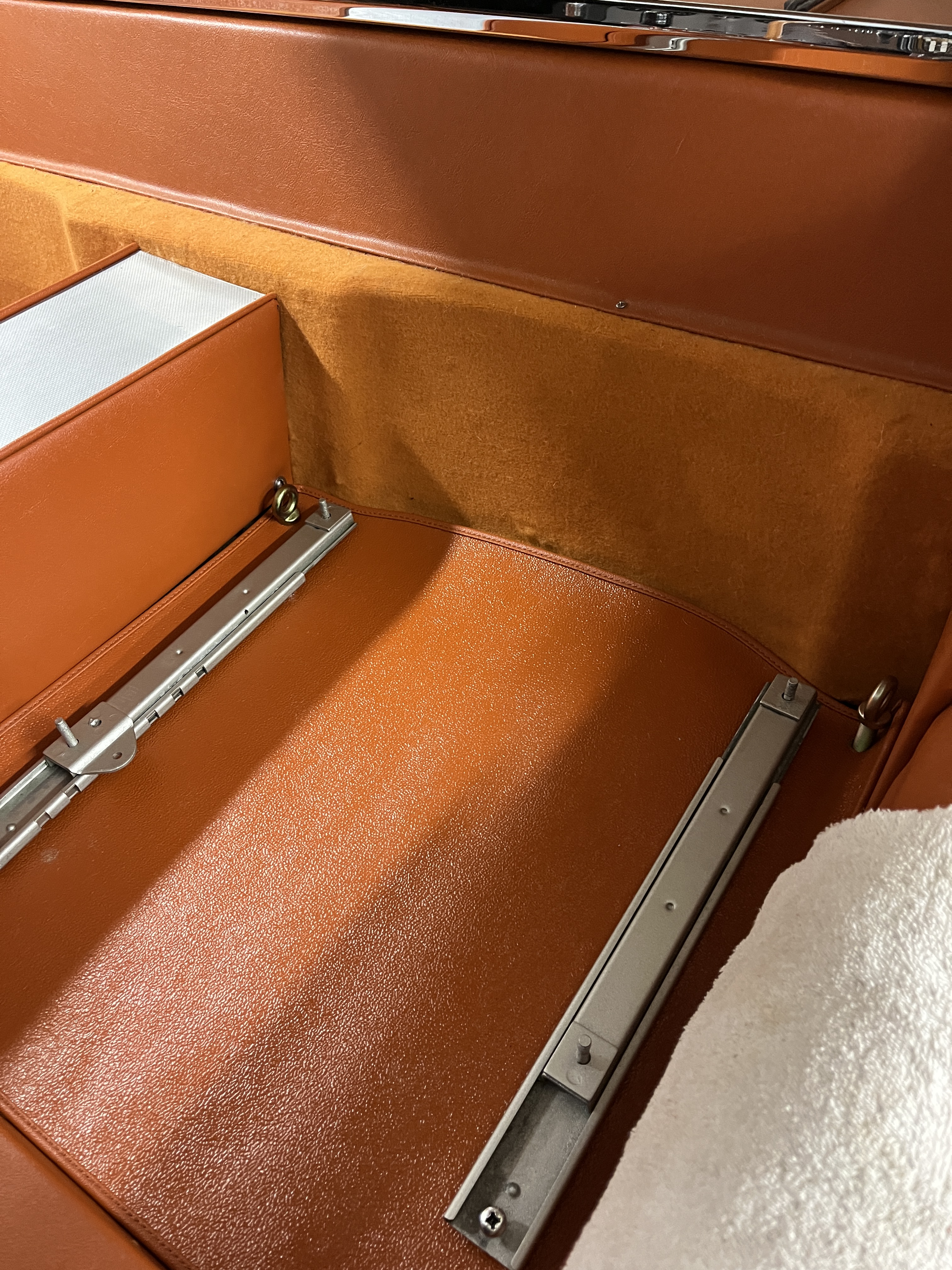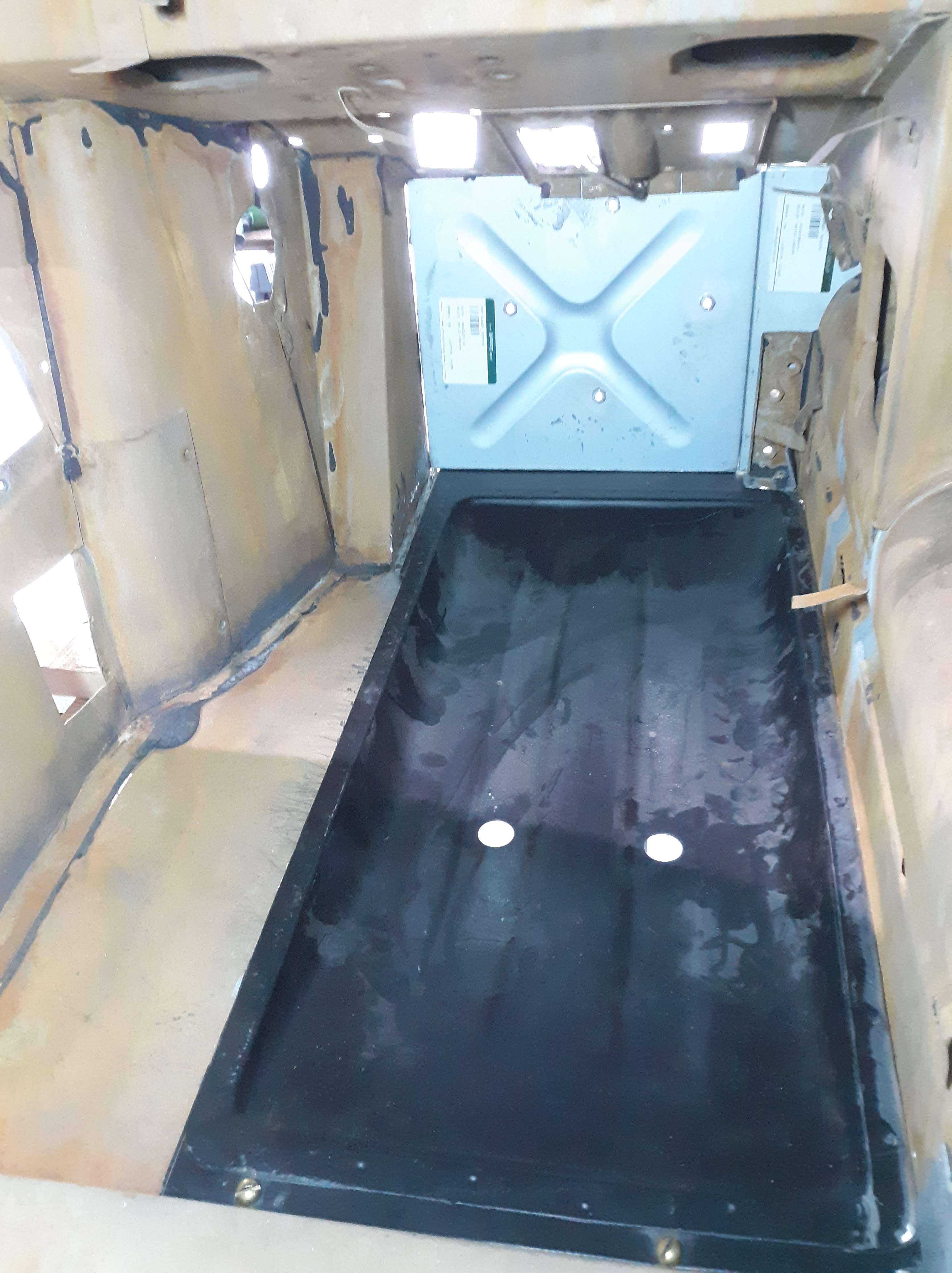 Key details in the picture that you can see are the cicular mounting point for the spare tire, the large round opening for the fuel tank drain, center left is the opening for the backup lamp, various stiffener elements, and random holes at the low point of the boot. Again, I surmise these were meant to be drain holes. BTW, I put solid rubber grommets in all the drain holes. Unlike maybe as on a Boston Whaler boat, I did not feel that a self bailing feature would be neccesary in this show car’s future!