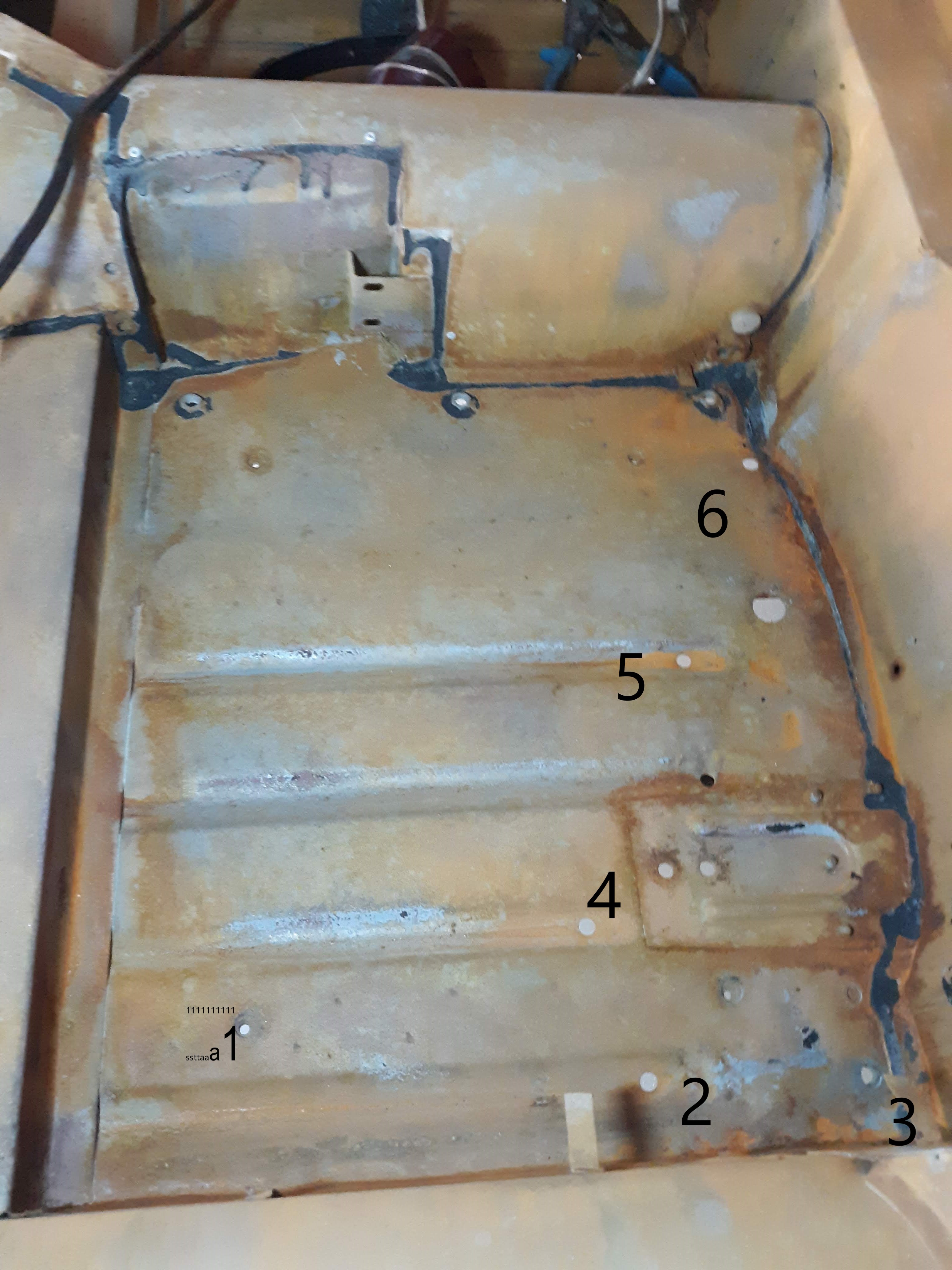 Down and to the right from 6 is a large hole. There was some educated speculation put forth on Jag-Lovers that this hole was used to locate the panel on the assembly jig prior to welding. Sounds good to me as I never found a use for it.