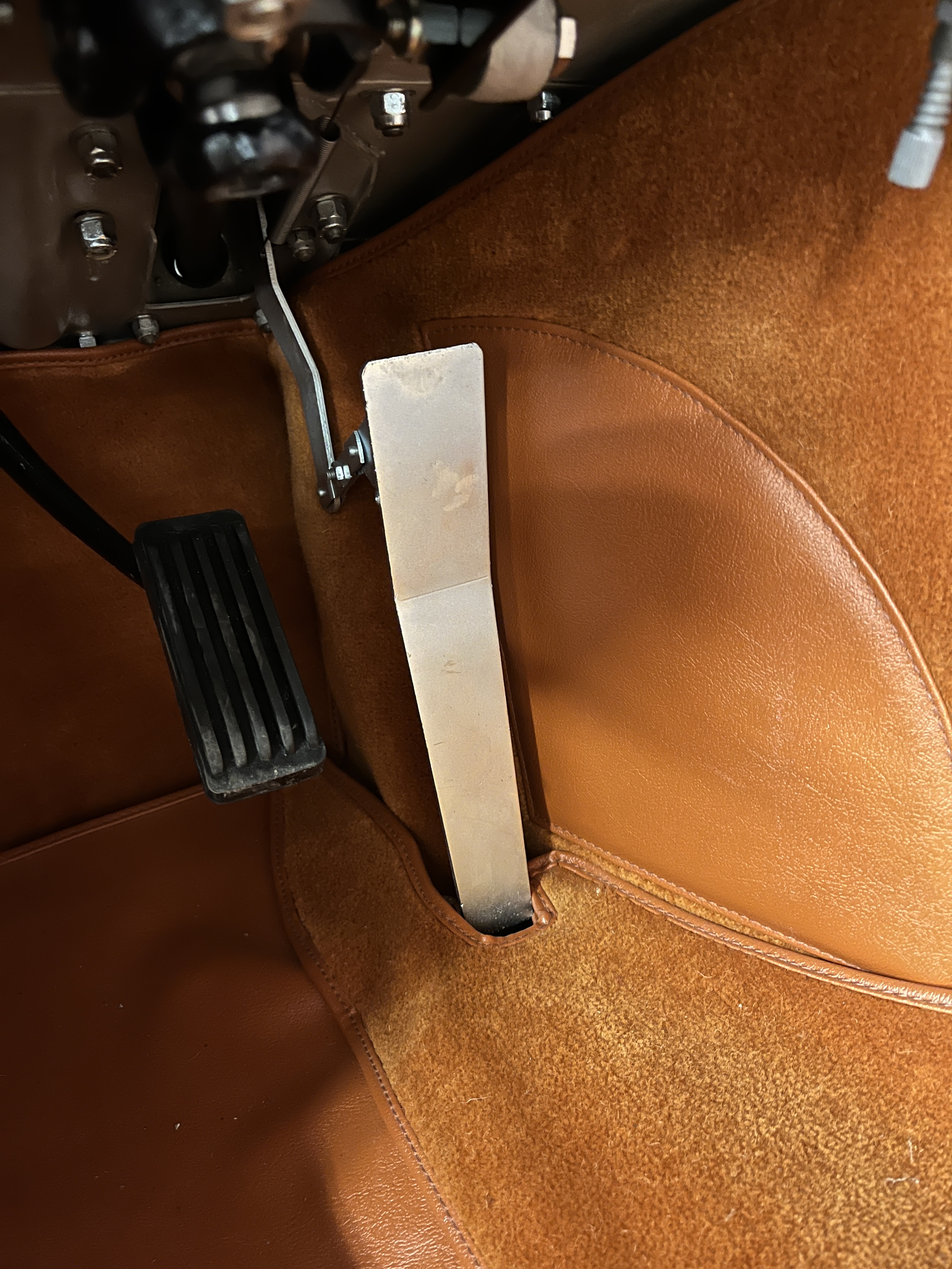 Of course things start at the “gas pedal”, although the SPC calls it an accelerator pedal. Things to look for are fouling with the upholstery and is the return spring installed and in good condition. The return spring is hard to see but it is attached to the upper part of the lever reaching down to the pedal.