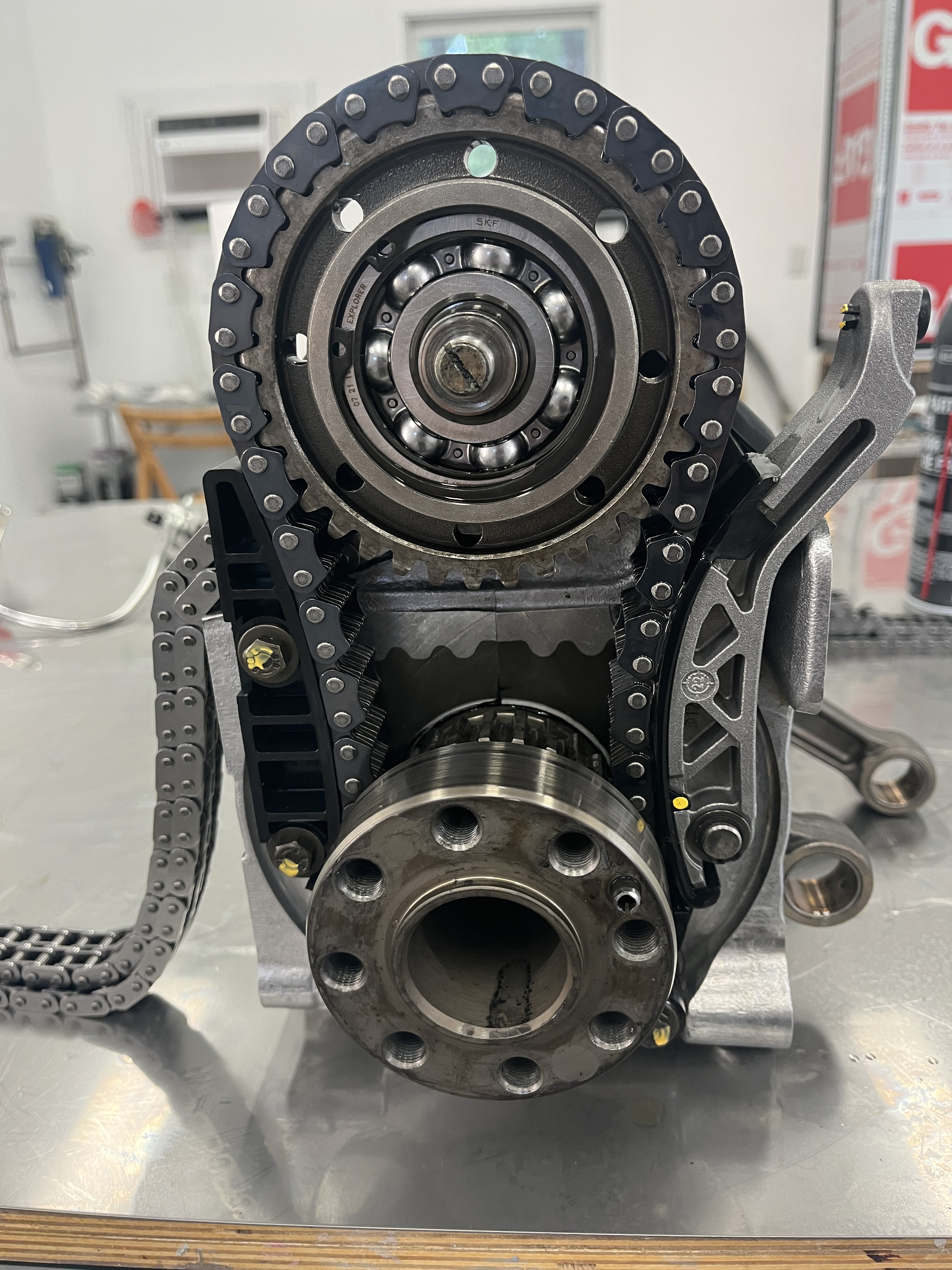 - Short timing change alignment. This issue was brought to my attention by Brandon at SRD. The “short timing chain” is the one that goes from the crankshaft gear to the intermediate shaft gear. For reasons that are not obvious, when you install the timing chain tensioner blade (996 105 165 55), you may upset the fitment of the chain on the crank pulley such that it is a half tooth off. It happened to me. Once you see what is going on, you can remove the circlip and washer that holds on the tensioner blade and then reposition the chain. Make this check right before you install the bank 2 crankcase half. If the chain is mis-installed, you will not be able to center the IMS in the center of the opening in the crankcase and you will not be able to install the bearing retainer.