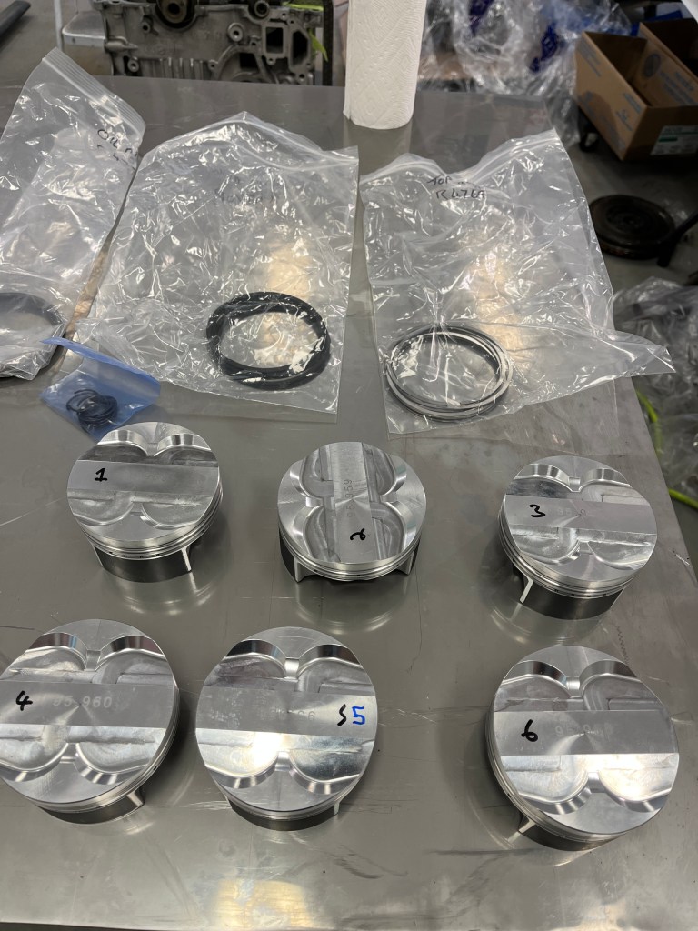 - Fitting the rings. Do this pretty much as Jake describes. The top two rings that I received with the Hartech pistons had an “N” on the top side. The 2nd ring also has a relief or bevel that must face down. I checked the top rings in the cylinder bores for end gap. At the time of my installation, Hartech recommended 0.004” of clearance per inch of bore diameter, +/- 0.001”. For the 3 ¾” nominal bore of the 3.4L engine, that came out to 0.015”. All of mine were perfect. Remember, all of this will be different for you guys going with the larger displacement parts.
