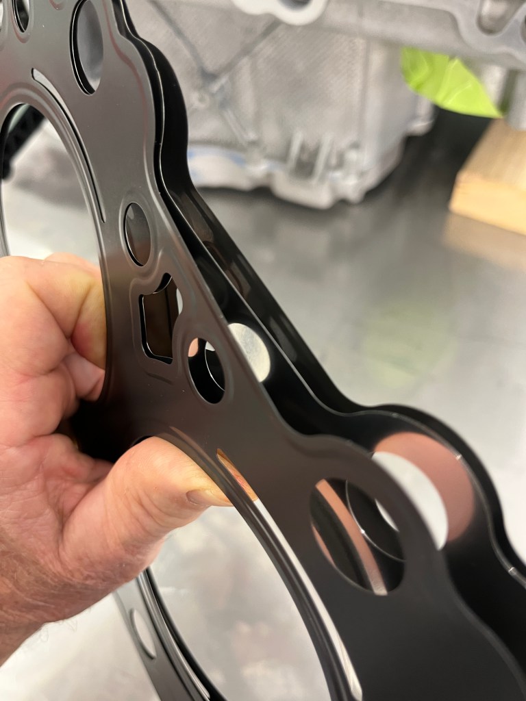 - Installing the cylinder heads. No real drama here. Use the process that Jake describes and you should be good to go. I used Loctite 574 to seal the area Jake denotes around the opening for the timing chains. As an aside, I measured the length of the “torque to yield” cylinder head bolts. The used ones were about .040” longer than the new ones. So that gives you an idea of how much they stretch.