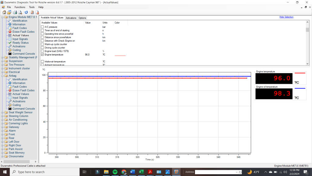 I have a 2007 Porsche Cayman S, which is also known as a 987.1. One invaluable tool that I use as required to keep this car in top shape is my Durametric Diagnostic tool. Go to Durameteric’s website for their discussion of how this product works but, at a high level, you plug a cord from your cars OBD port to your laptop and with the Durametric software, there are a lot of things you can do.