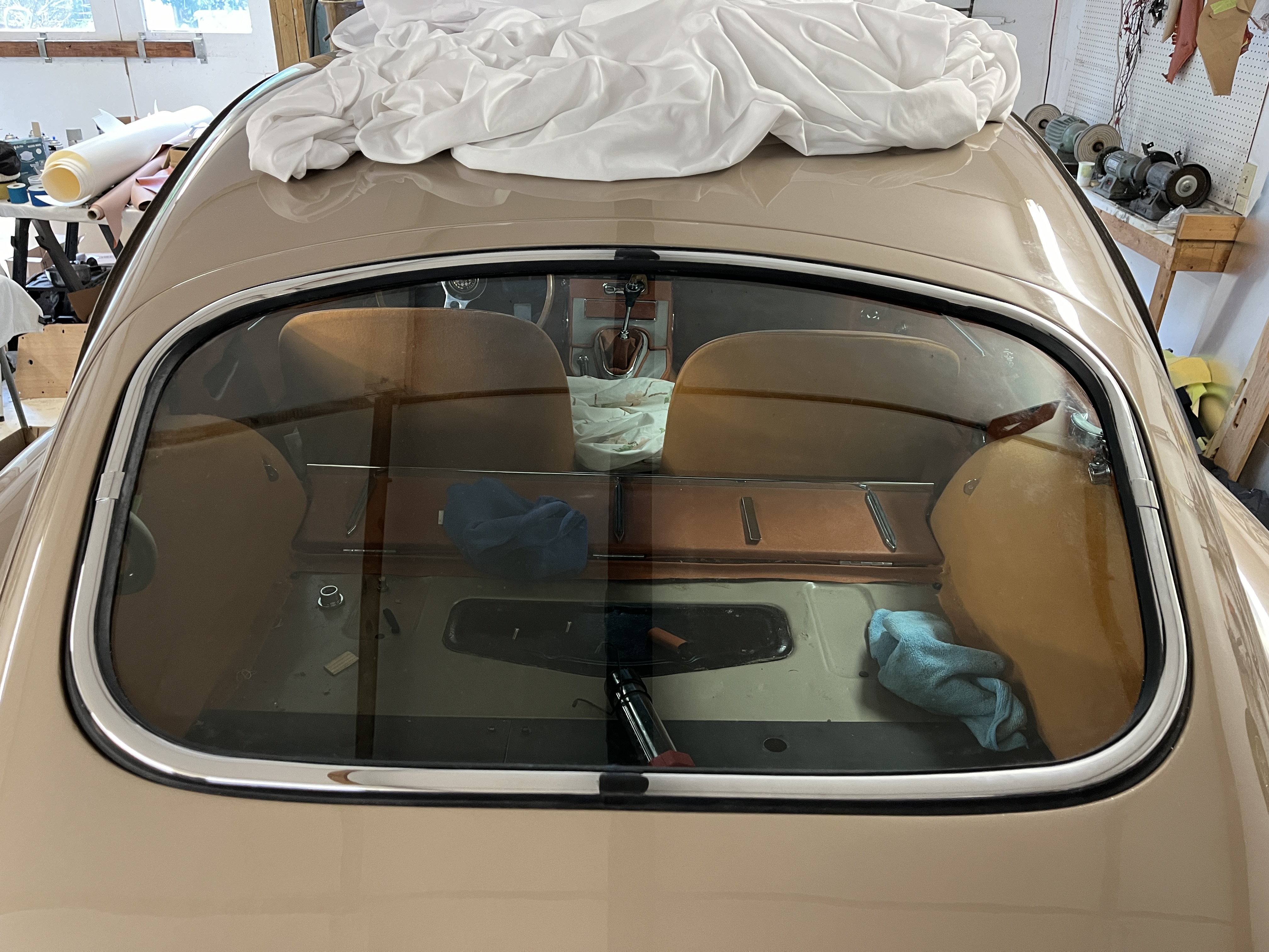 Rear hatch window and trim- At some point, I installed the window in the rear hatch. I just recently installed the chrome trim that fits around the window. Remarkably, this went pretty well.