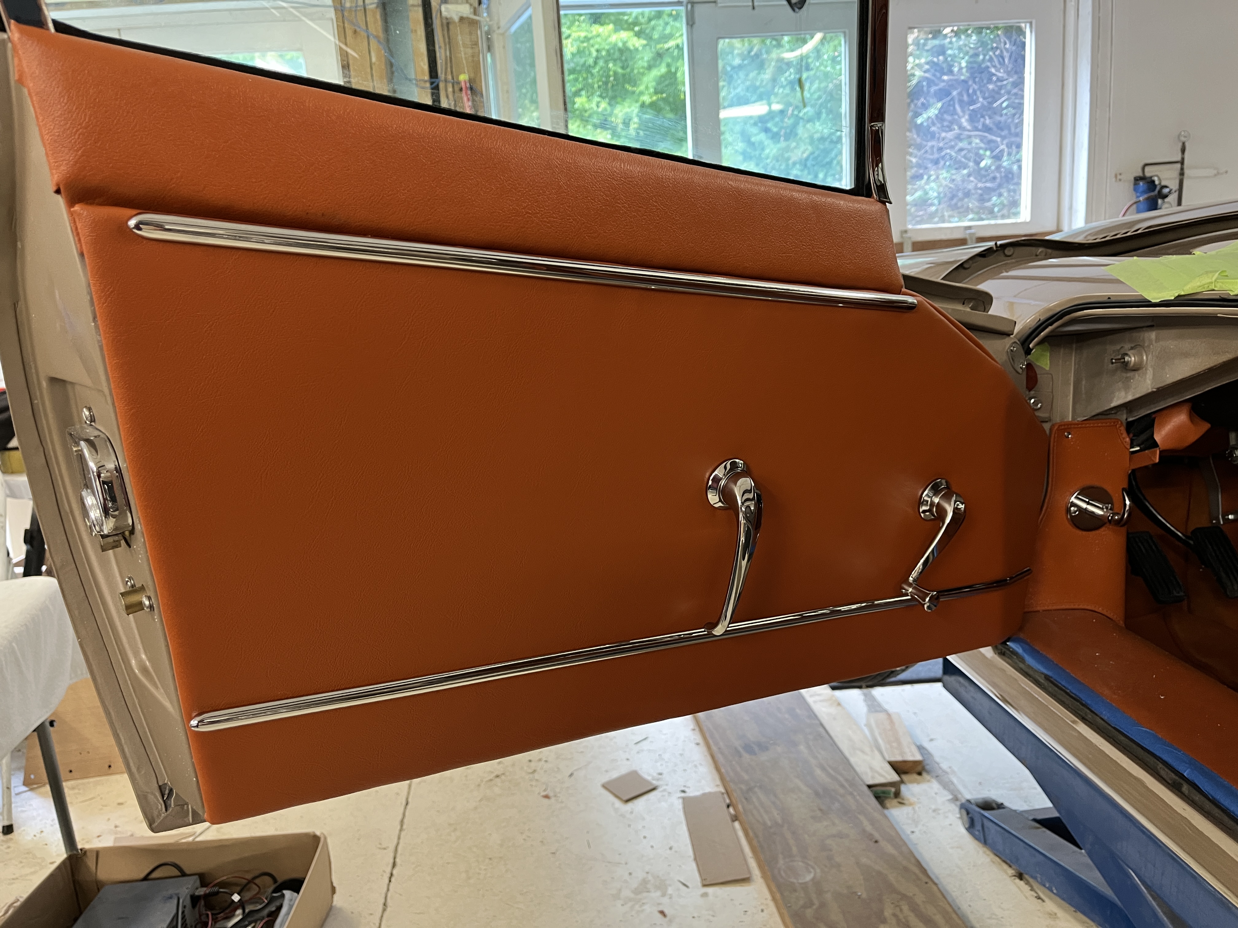 Door cards- I will write a more detailed article but I wound up making new door cards. The main reason for this was that the ones the upholstery shop sent me “telegraphed” the metal clips that hold the cards to the doors, due in my opinion to insufficient padding. I came across other interesting issues which I will discuss in more detail in the detailed article.