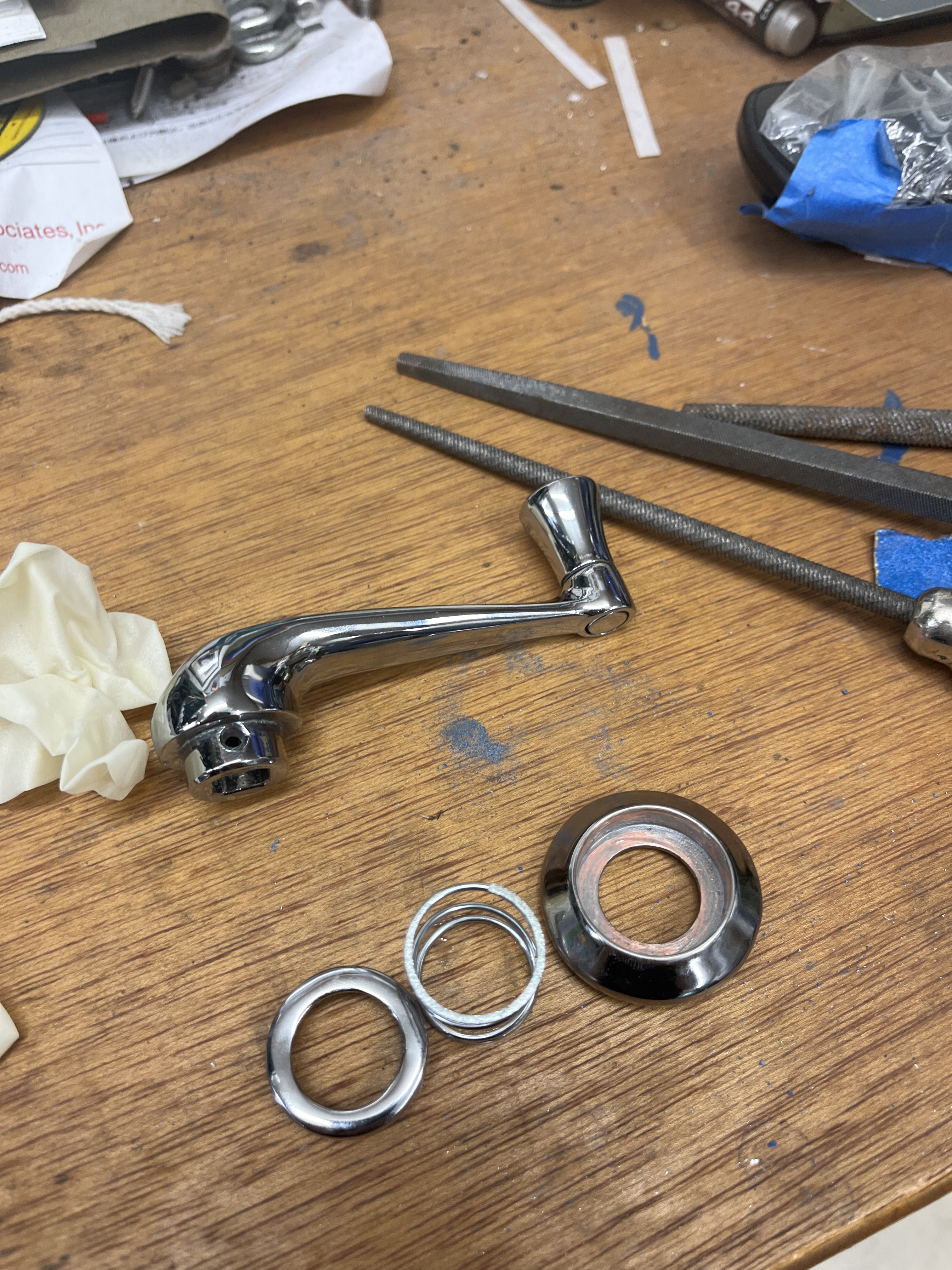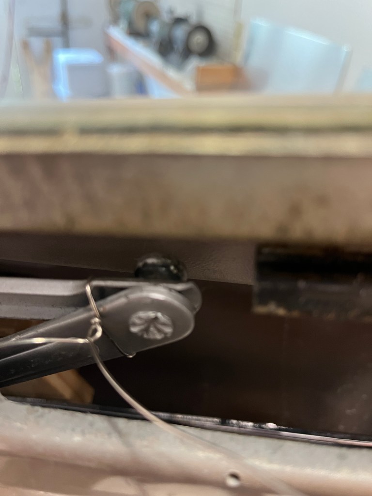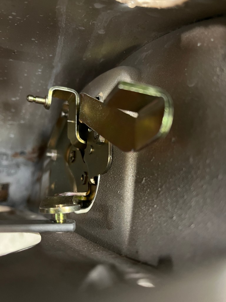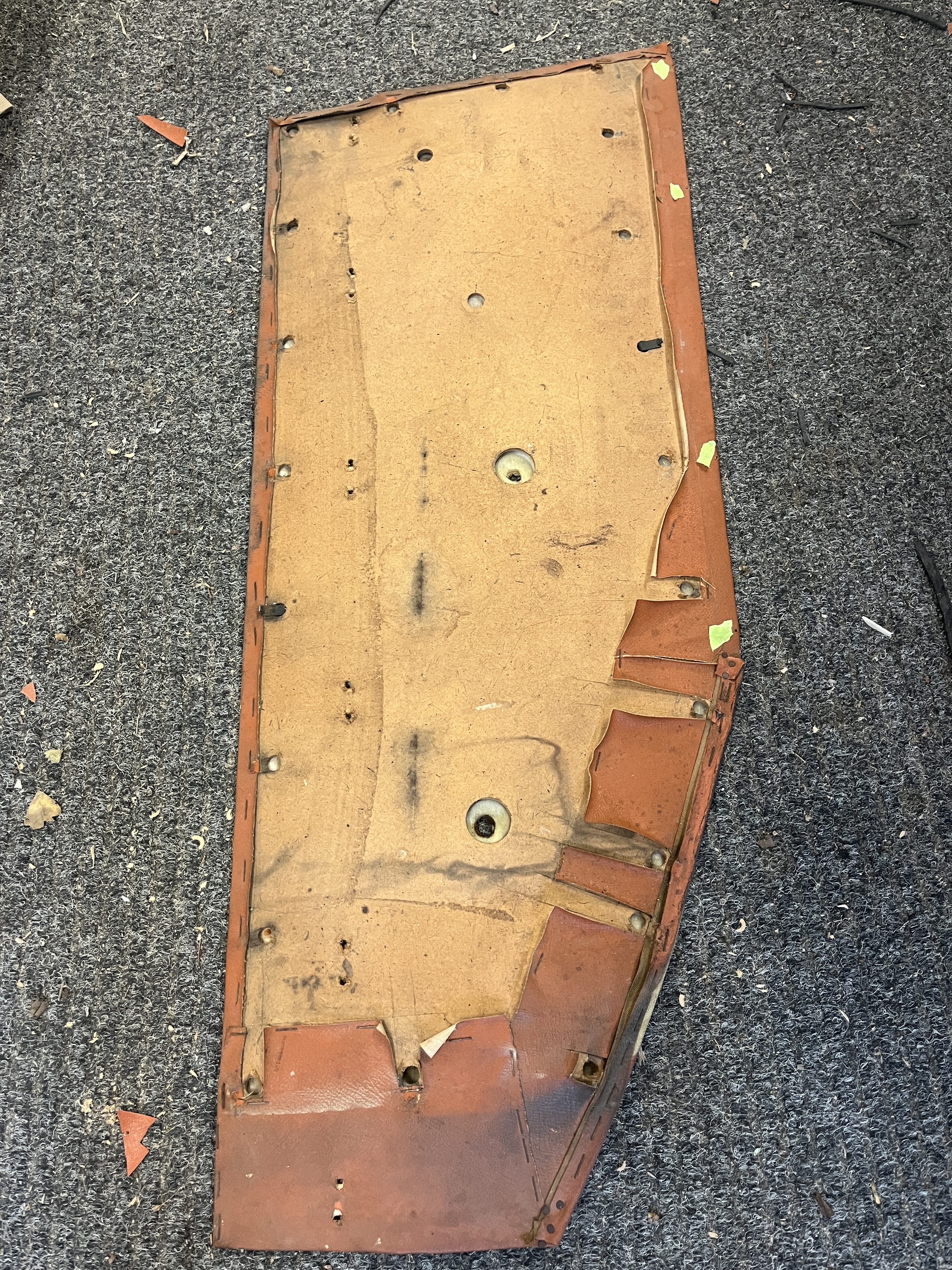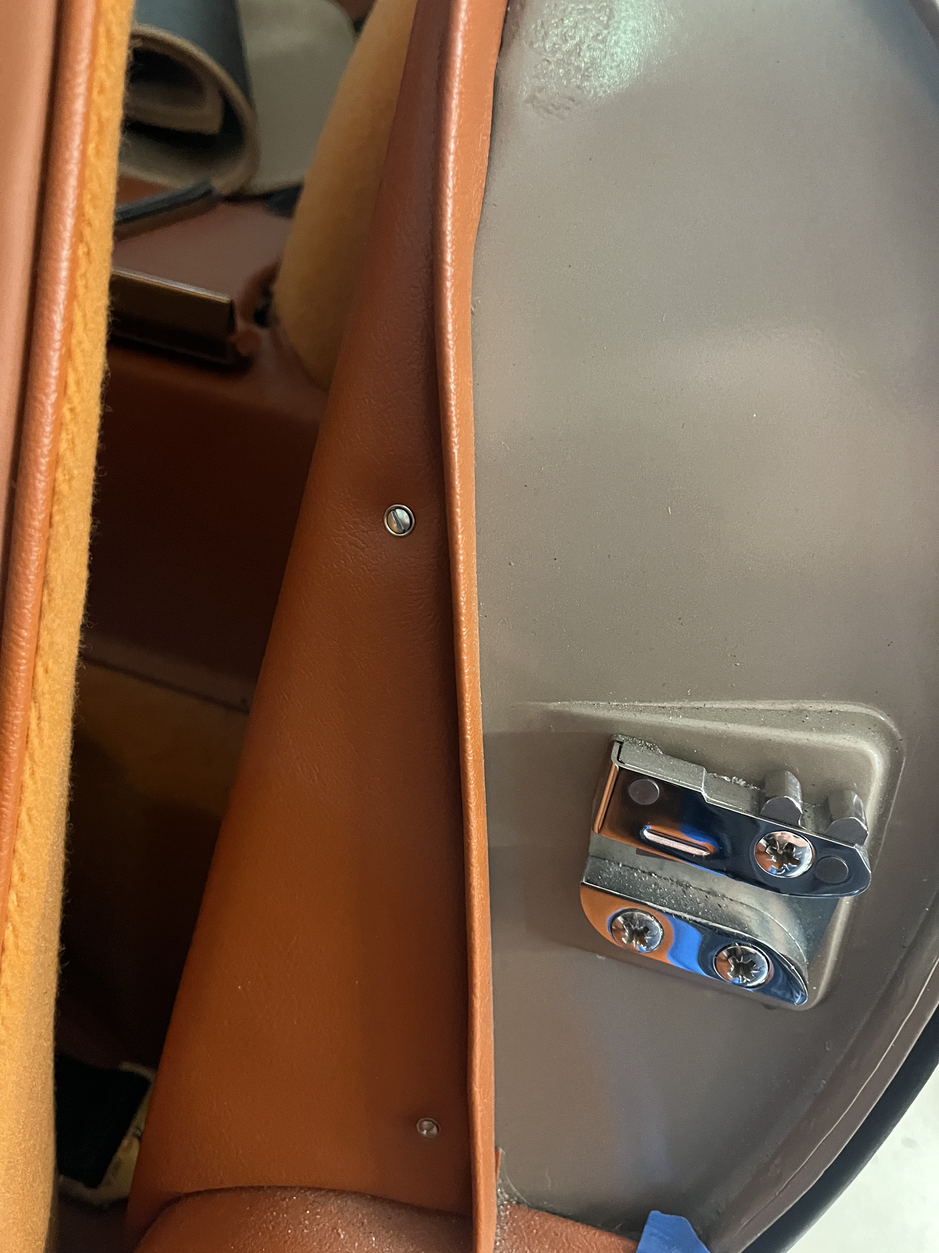 A comment on the outer door handle. It’s mechanism is a little wonky. On mine, pushing the outer “thumb button” extends a smallish bolt on the inside. The bolt is adjustable, with a locknut, so you can mess with the engagement if you need to. Where is gets interesting is when you lock the outer handle with your key. After rotating the key in the lock direction, pushing the outer thumb button still happens but the bolt on the inside does not move. If this is not happening (which may be why you are taking out the handle!), look at the condition of the sheet metal cap on the inside where the bolt comes out. This cap historically breaks. There are also some “pot metal” pieces on the inside that snap off. Mine had both problems. I bought new handles from SNG. They are very reasonably priced, considering the parts count that makes up a functioning handle.