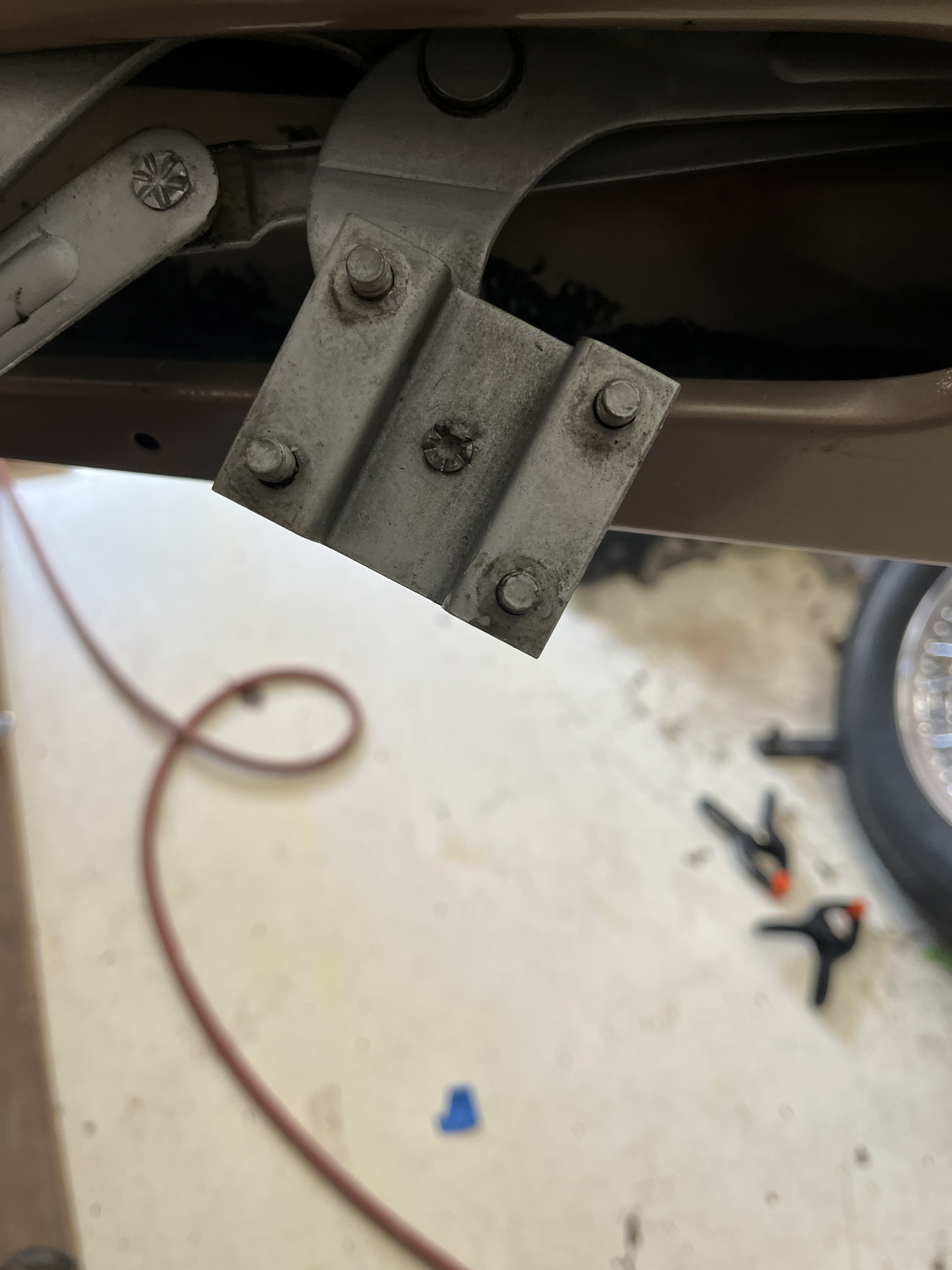 -Provisionally engage the frame at the bottom of the two vertical legs, with the small angle brackets and bolting hardware. You should see that the brackets have slotted holes which will allow some tilt at the top of the frame.