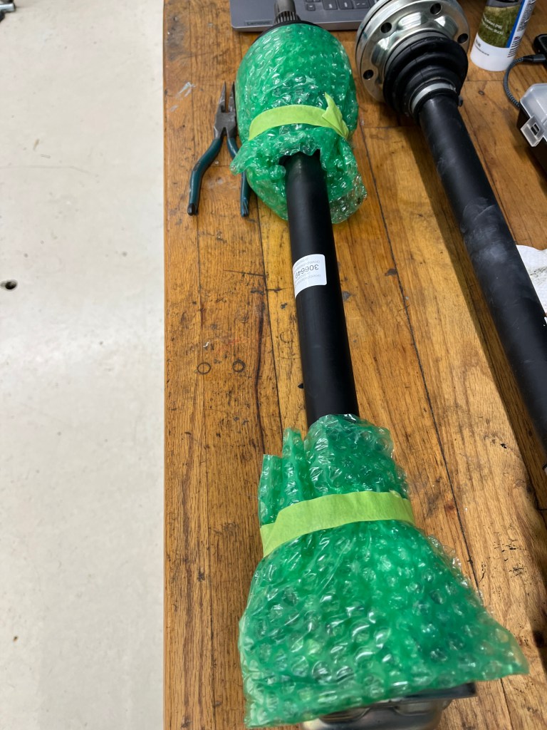 I frankly did not know the condition of my CV joints. They did have 100K miles on them and I suspected if I took them apart and cleaned them up, I would likely see some evidence of wear. So my brain started to shift towards purchasing complete new assemblies. Just for fun, I contacted my local Porsche parts counter. We have an understanding that I get to play my “I see them at GetPorscheSilverSpringParts” card for their discounted price, which my local dealer will generally match. That got the price into the $2400 range for a pair, with tax. Then came surprising news. For one side, there were only 3 showing in the world. For the other side, there were none and the part number was discontinued. Wow! BTW, the latest part numbers for my 2007 Cayman S are 987 332 024 66 and 987 332 024 68. I reached out to GetPorscheSilverSpring and they replied that neither part was available. I then contacted Mike at 5150Motorsport to see what he could come up with. He got back to me with the somewhat surprising news that RockAuto was showing availability for new GKN drive shafts. GKN is reportably the OEM for the Porsche axles. I was able to get the pair, with tax and shipping, for $898. The RockAuto drive shafts arrived a few days later. They came in a GKN box. There was no core charge and I believe they are new items.